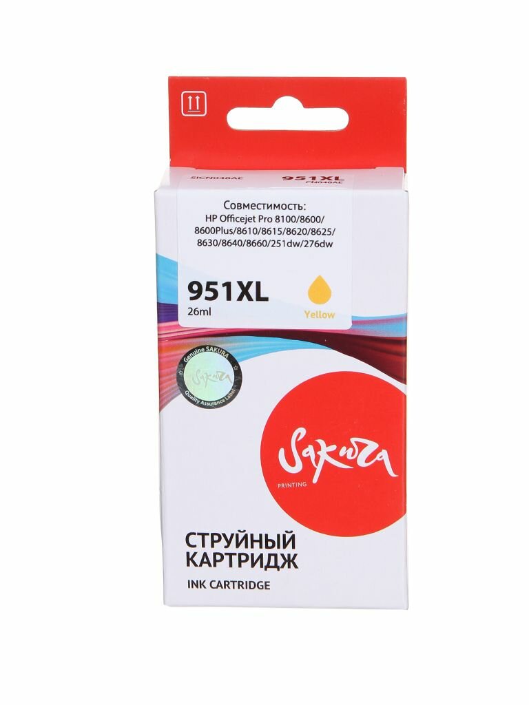 Струйный картридж Sakura Cn048ae (951xl Yellow) для HP, желтый, 26 мл., 1500 к. Sicn048ae