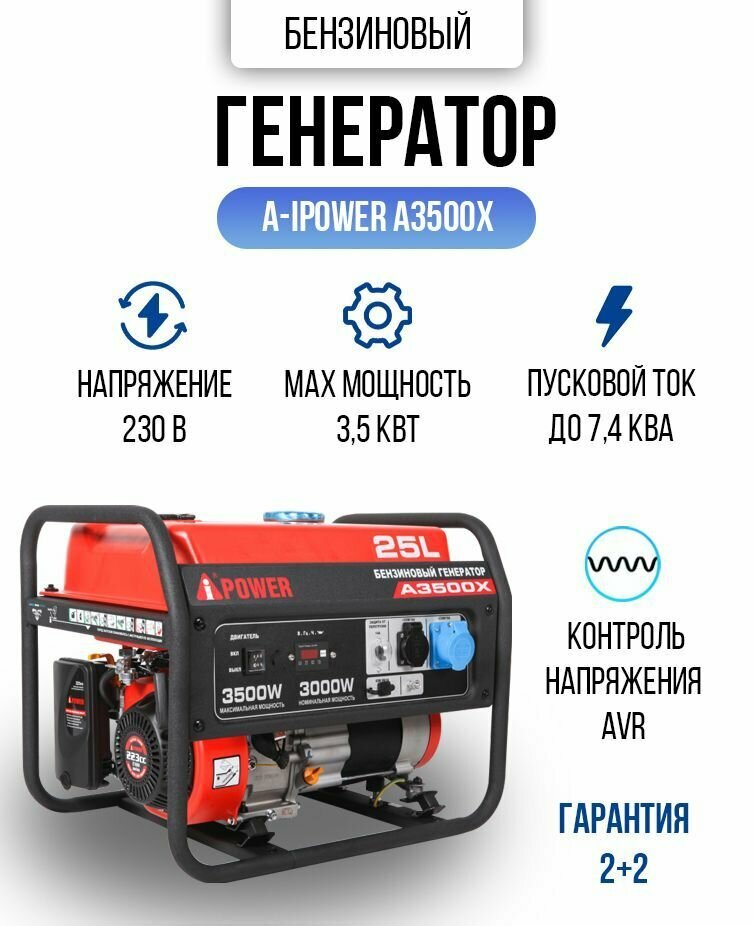 Генератор бензиновый A-iPower A3500X 3,5 кВт 230/50Гц, с высокими пусковыми нагрузками до 7,4 кВт