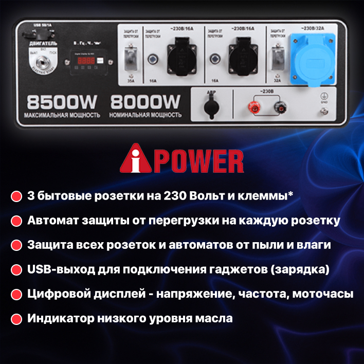 Бензиновый генератор A-iPower A8500EA с электростартером, 8,5 кВт, 230В. Надёжный генератор для дома и дачи