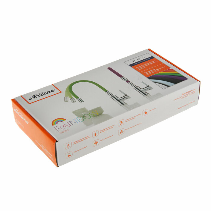 Accoona Смеситель для кухни Accoona A9890G, однорычажный, с силиконовым изливом, белый/хром