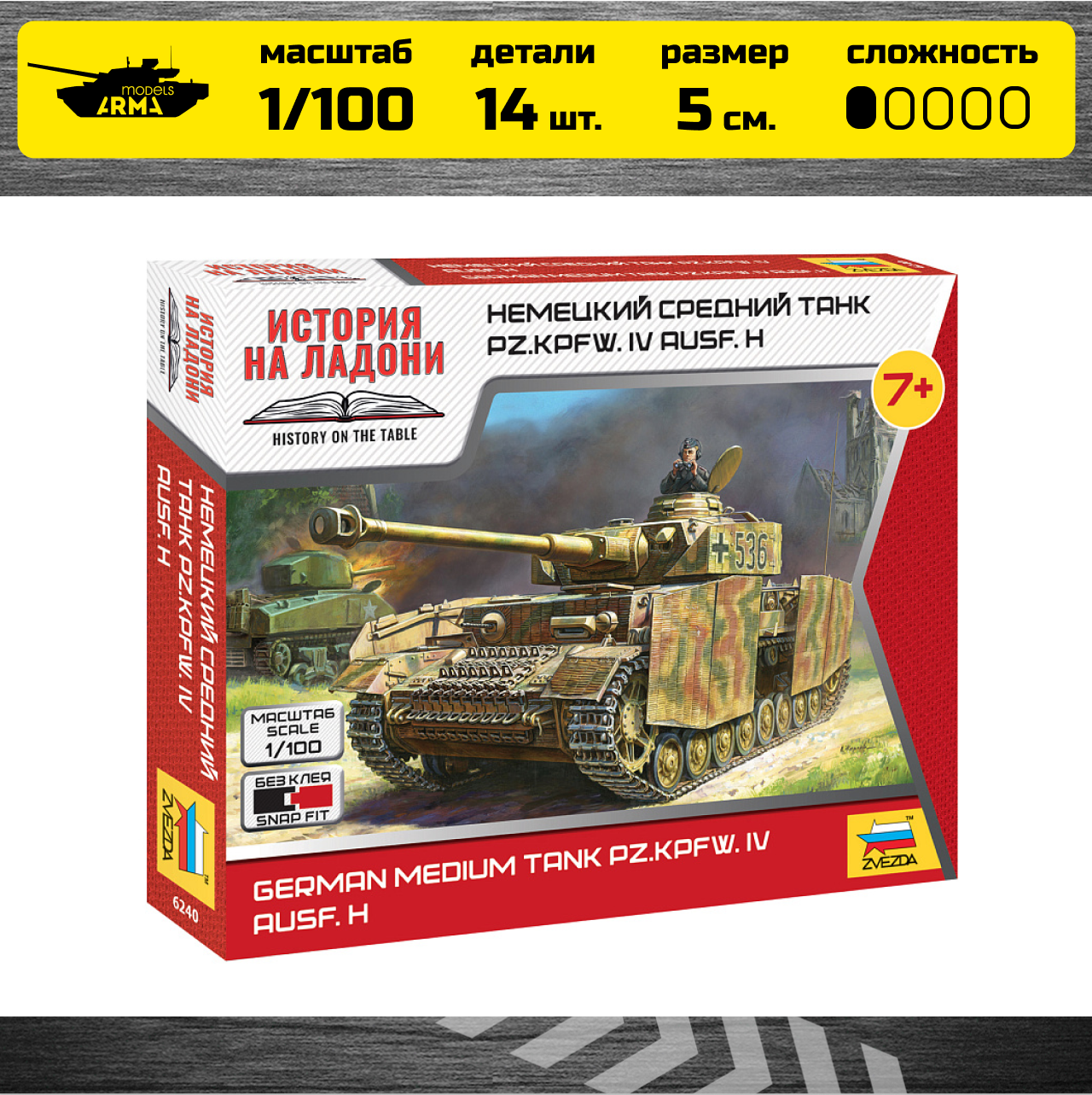 ZVEZDA 6240 Модель для сборки без клея Немецкий средний танк Т-4Н 6240 Немецкий средний танк Т-4 H 1/100