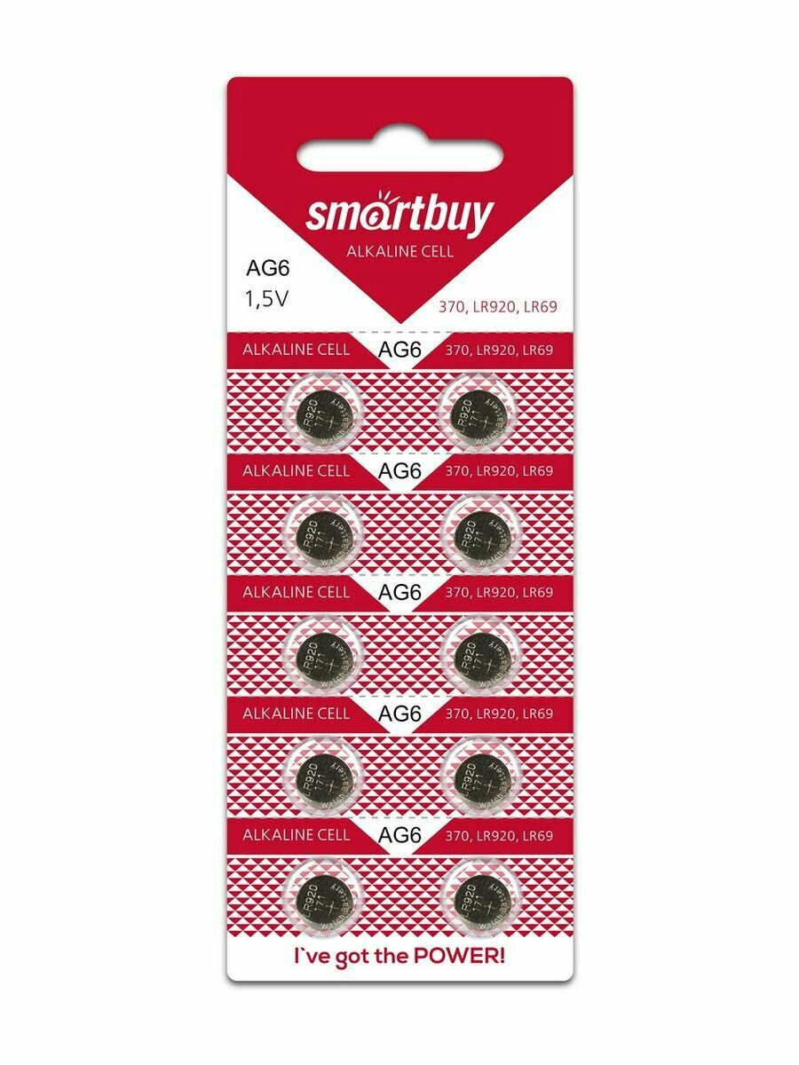 Купить Батарейка G 6 (370) LR 920. LR 69 SmartBuy SBB-AG6-10B (10шт)