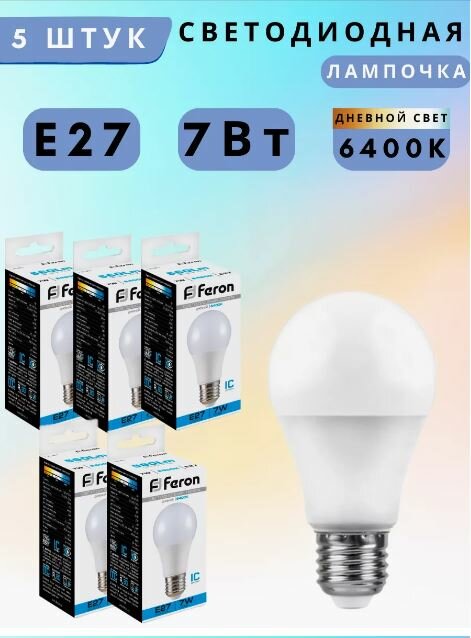 Лампа светодиодная Feron 7Вт, 230В, E27, 6400К, A60 5шт