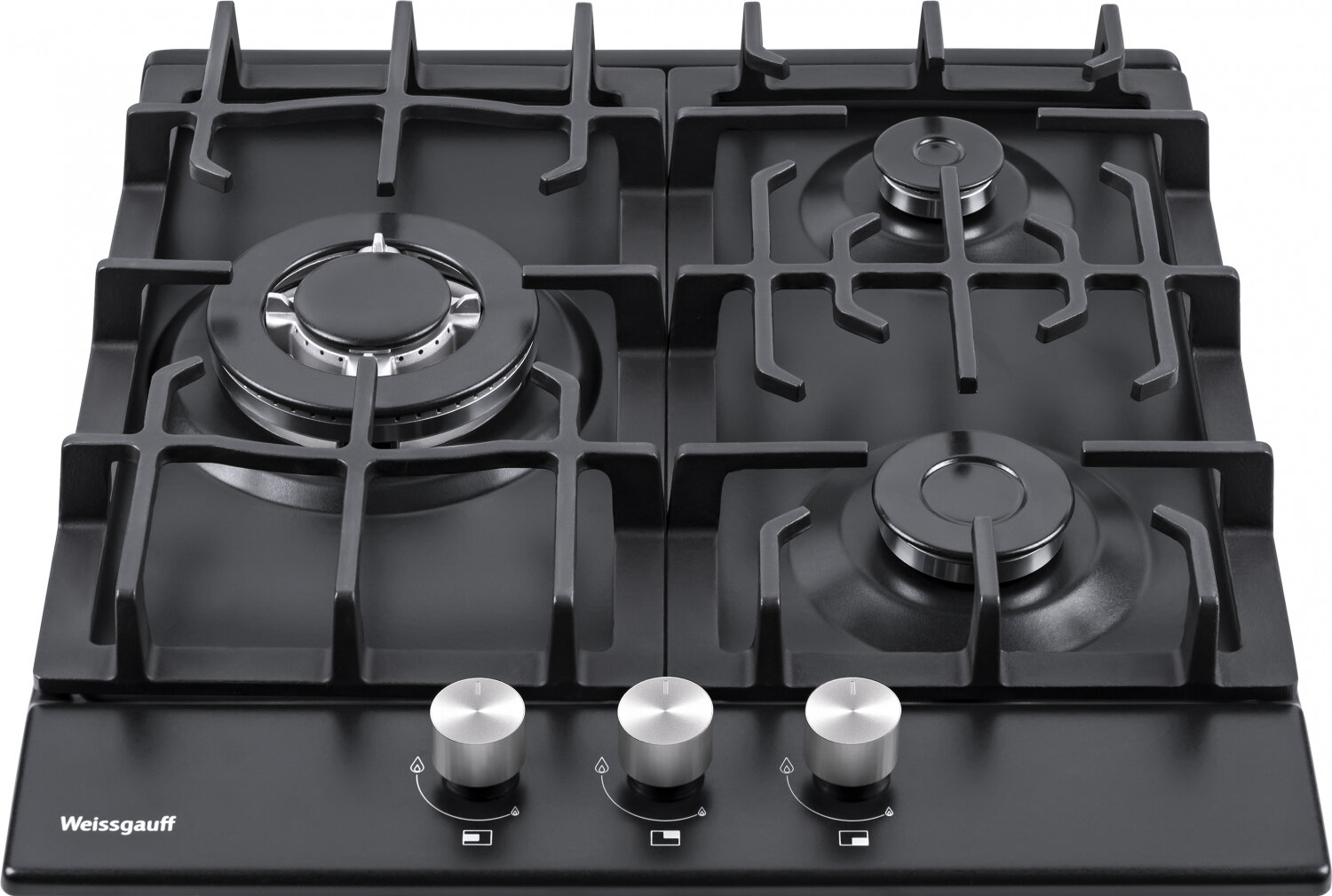 Купить Варочная панель Weissgauff HGG 451 BEB WOK-конфорка, 3 года гарантии, автоматический электроподжиг, Сатинированные рукоятки с защитой от отпечатков пальцев, газ-контроль