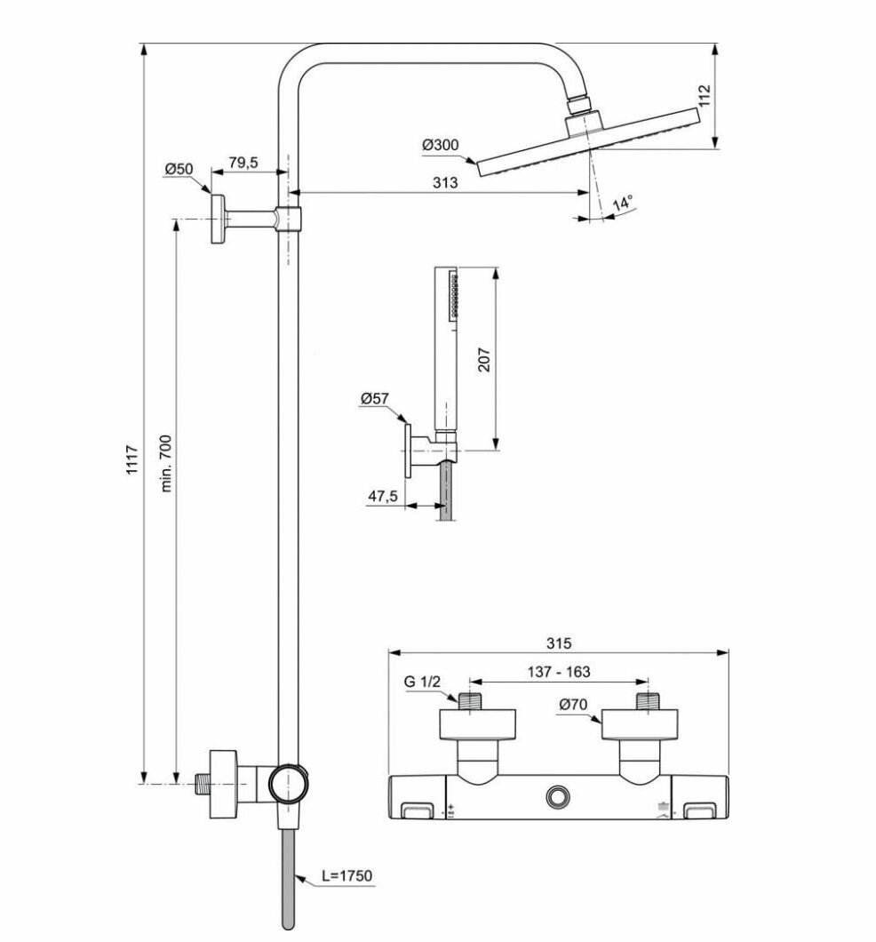 Душевая колонна Ideal Standard CERATHERM T25 BC748XG