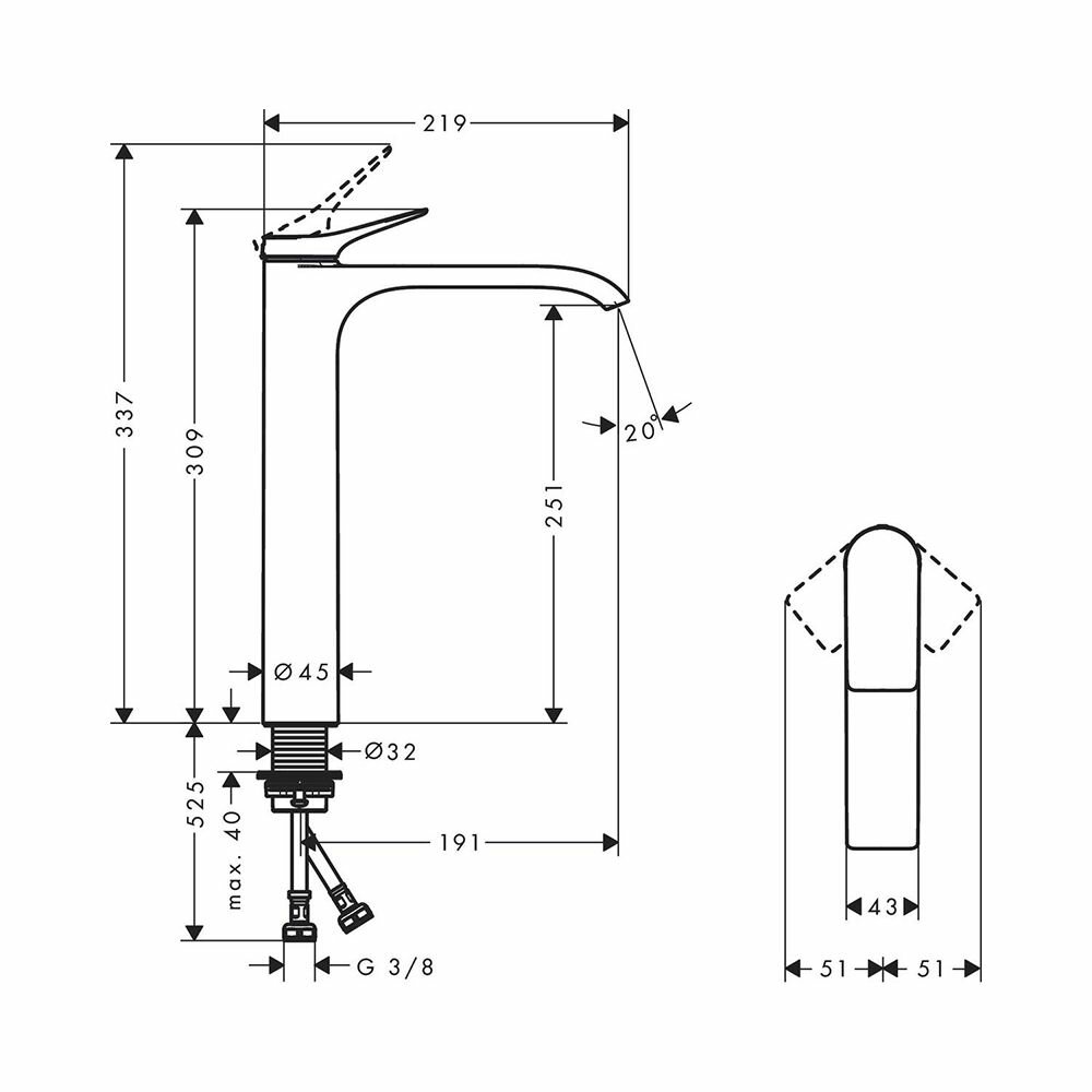 Vivenis Смеситель для раковины, однорычажный, 250 без сливного гарнитура, для раковины в форме таза 75042000, хром