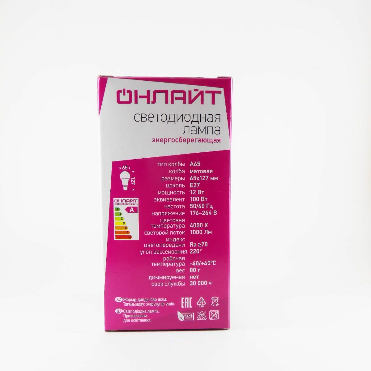 Лампа светодиодная онлайт OLL А 12Вт E27 4000К 1000Лм 240В 71655, 1250352