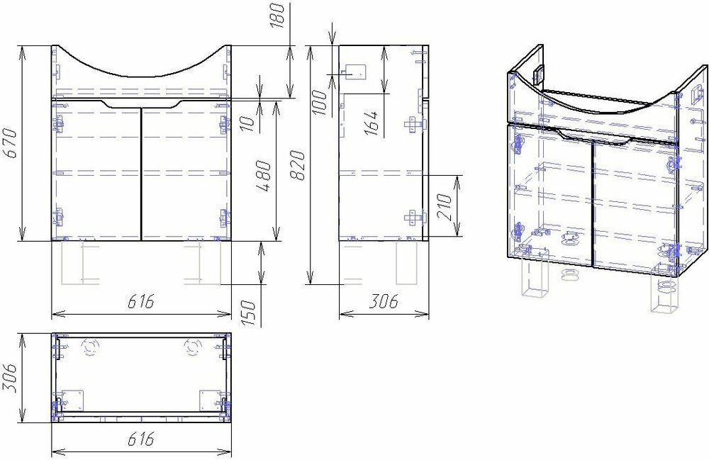 Тумба Dreja David 65, 99.0701, подвесная/напольная, 2 дверцы, с опорами, белый глянец интересное: