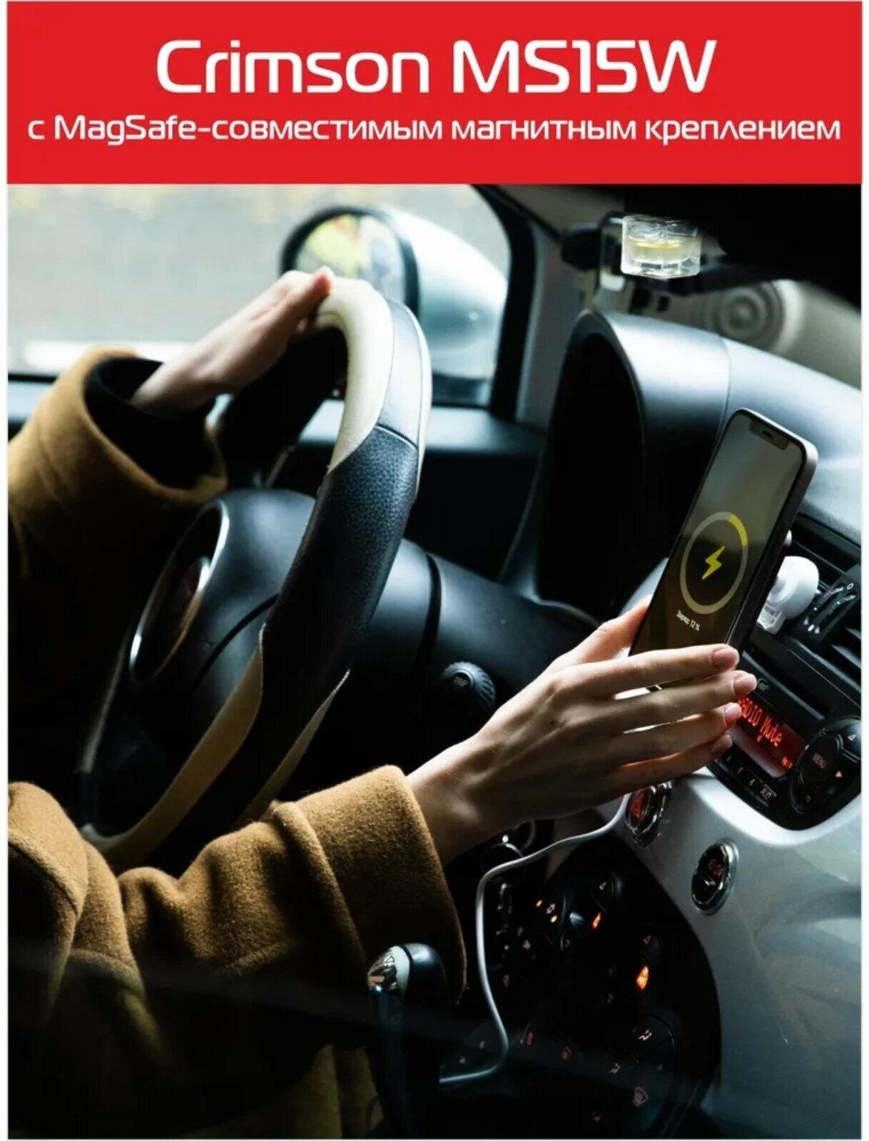 Автомобильное зарядное устройство Crimson MS15W, беспроводное, QC 3.0, черное