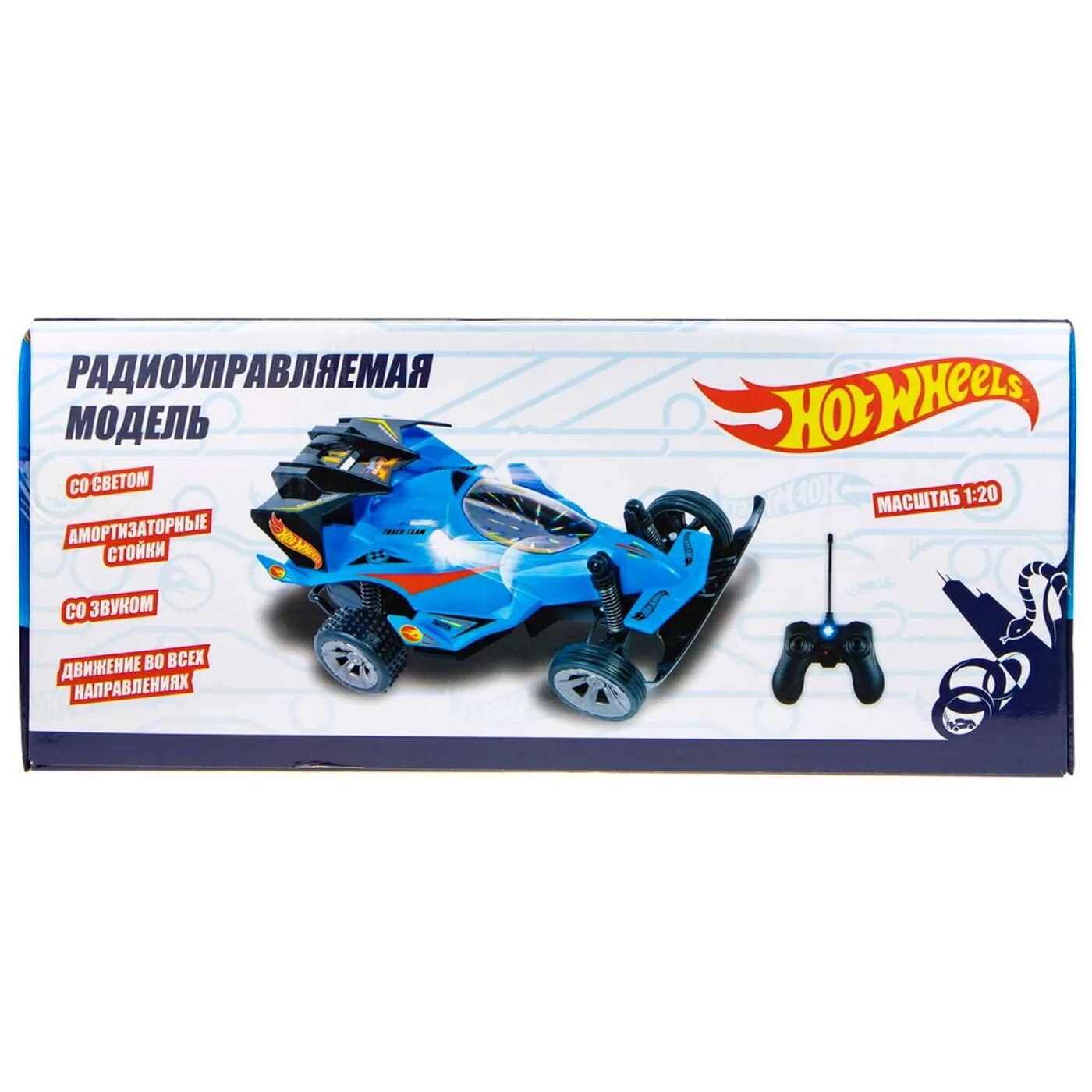 Купить машинка Hot Wheels на р/у, масштаб 1:20, cо светом и звуком, скорость до 19км/ч, с АКБ, синяя
