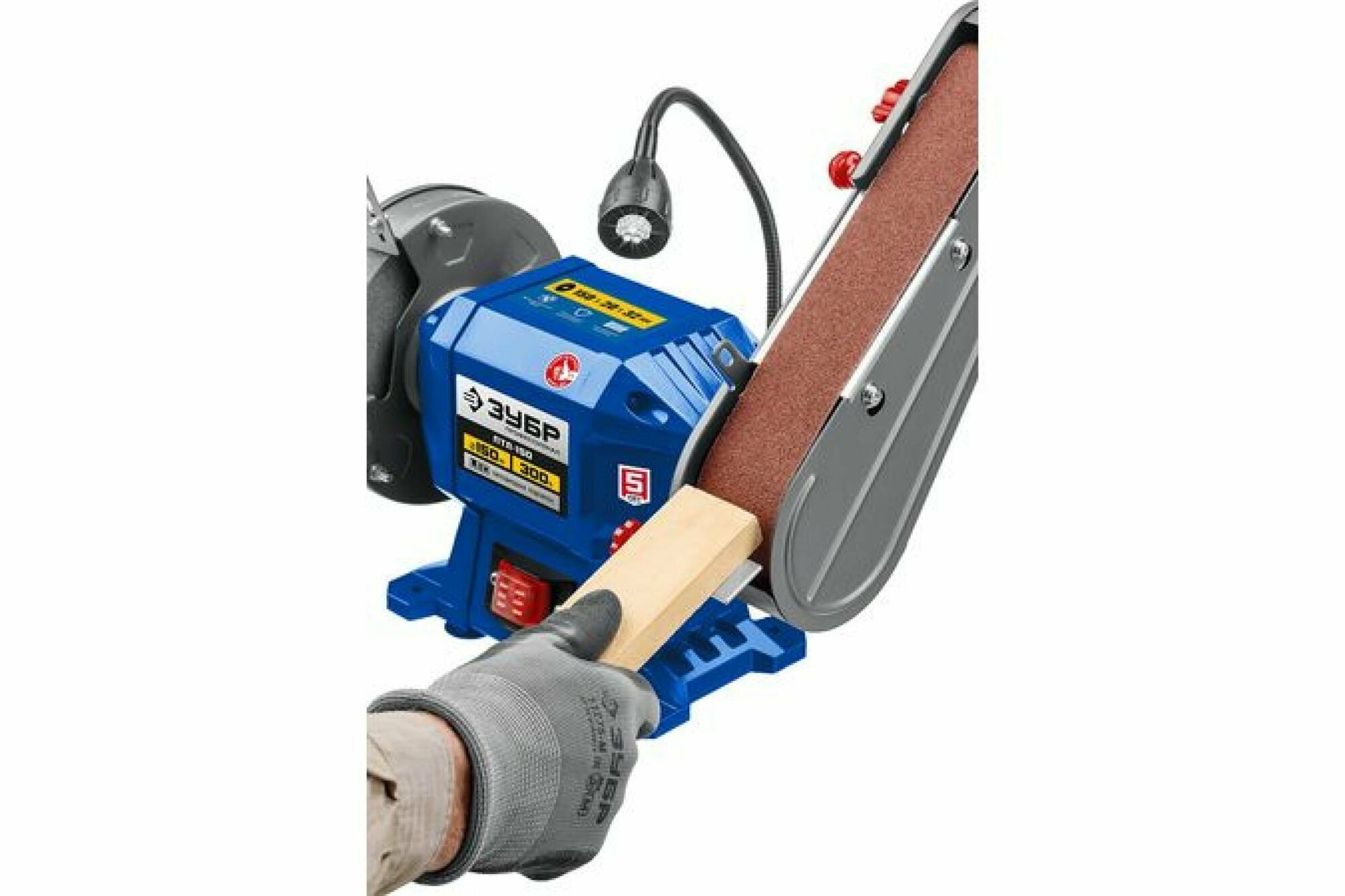 Купить Точильный станок с шлифовальной лентой ЗУБР ПТЛ-150 (300Вт, 2950 об/мин, 1 диск 150мм, лента 50х686мм, подсветка)