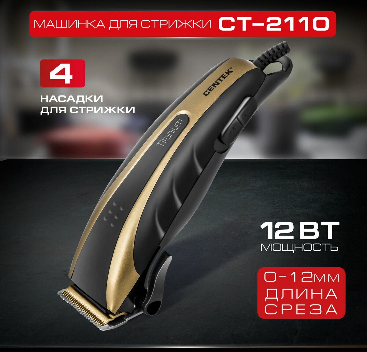 Купить Машинка для стрижки CENTEK CT-2110 черная/золотая титановые ножи, прорезиненный корпус