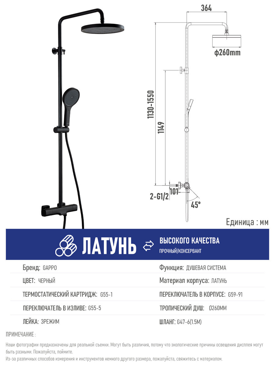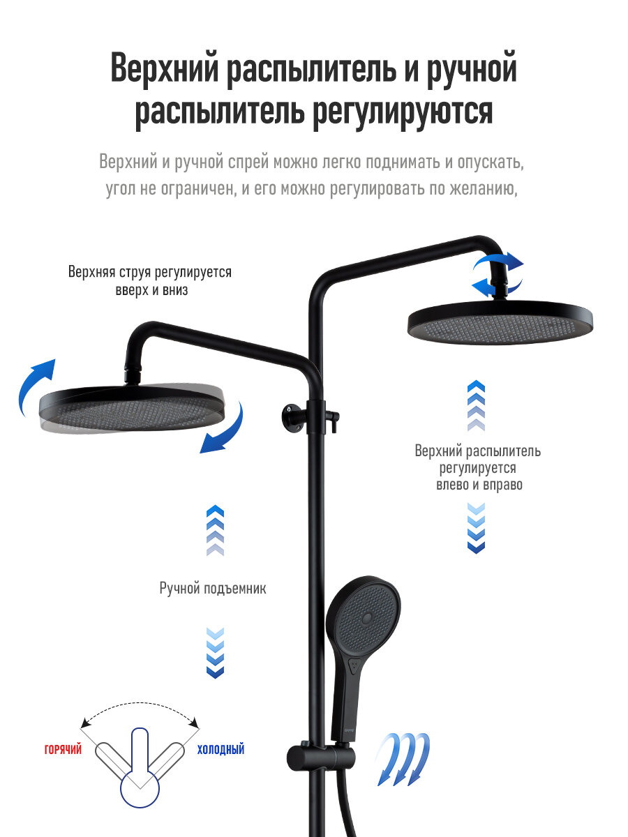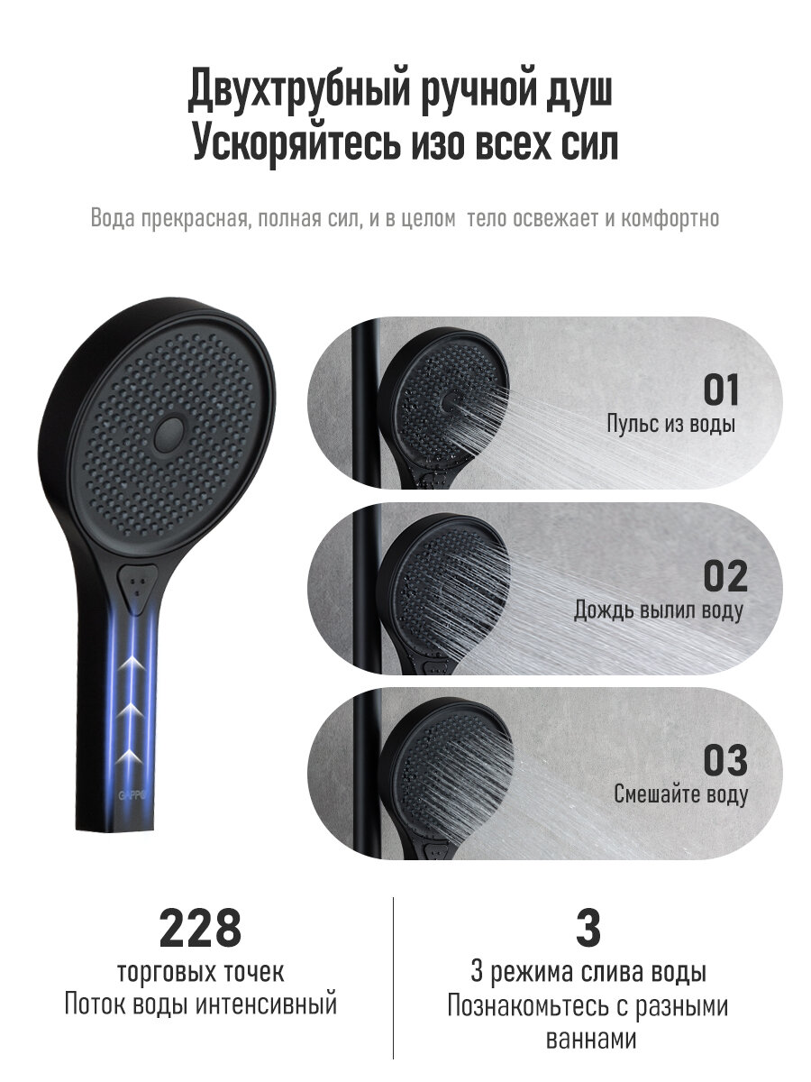 Душевая система с термостатом Gappo G2495-76 черный интересное: