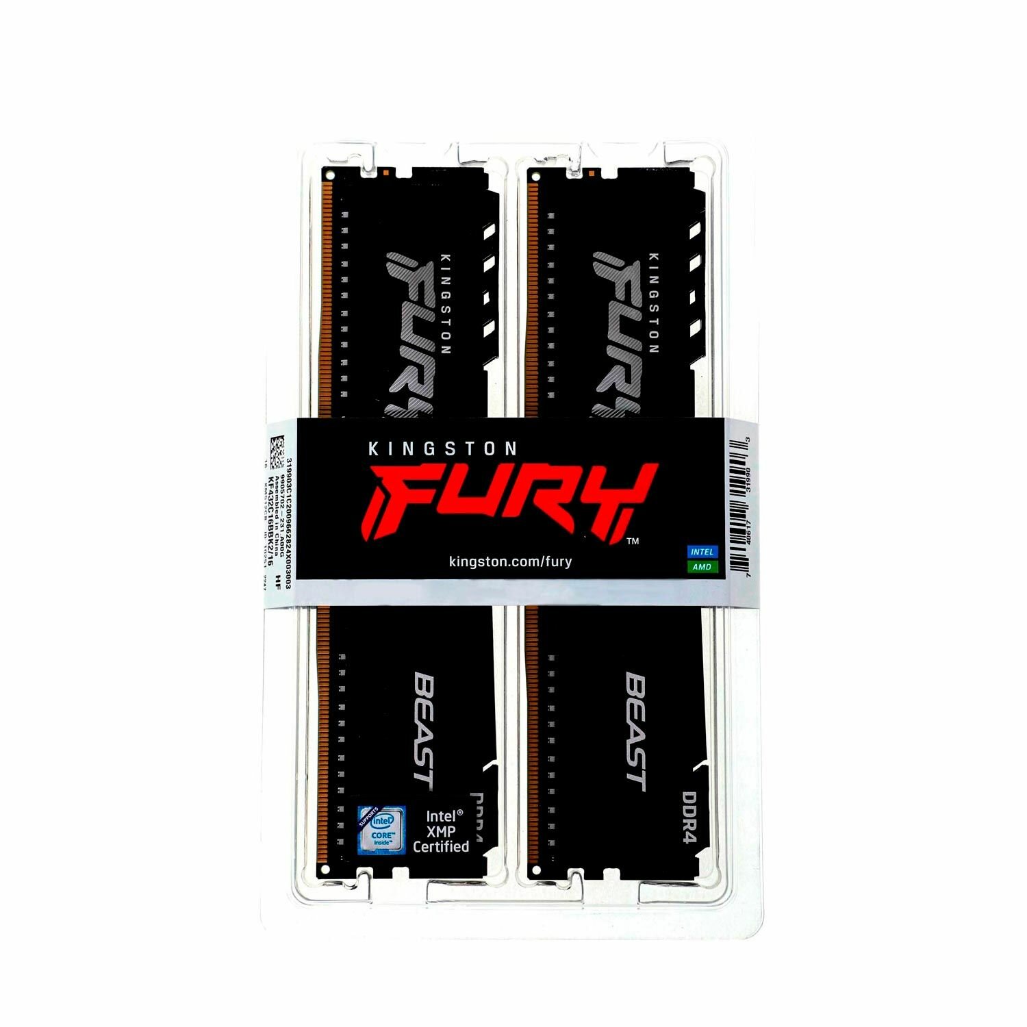 Модуль памяти Kingston Fury Beast Black KF437C19BBK2/16 DDR4 - 2x 8ГБ 3733, DIMM, Ret