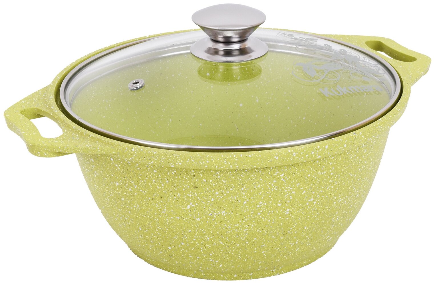 Кастрюля-жаровня "Kukmara" 4л. со стеклянной крышкой, с антипригарным покрытием, "Trendy style" (Malachite)