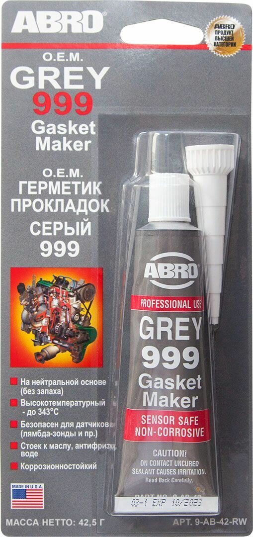 Силиконовый герметик прокладка ABRO Gasket Maker Grey 999 Герметик прокладок, нейтральный, высокотемпературный RTV (O.E.M.) туба 42.5 г. 9-АВ-42-RW
