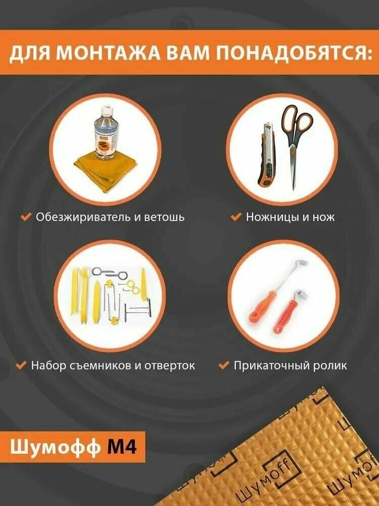 Шумоизоляция , виброизоляция для автомобиля М4 36 листов Шумофф 37х27 см + ролик + перчатки + 2 ленты антискрип