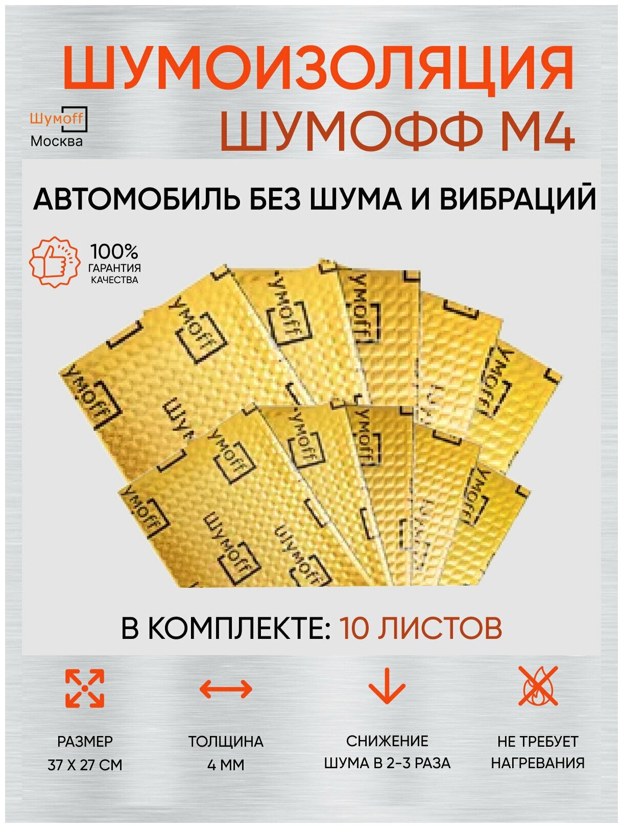 Виброизоляция Шумофф М4 - 10 листов, шумоизоляция для авто