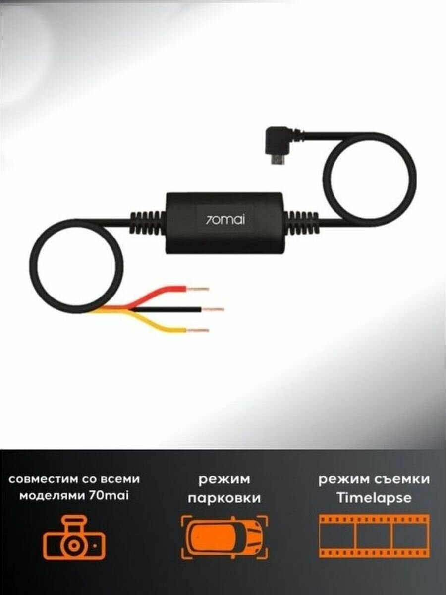Кабель питания для видеорегистратора 70mai Hardwire Kit (UP02), без камеры, 3 метра, черный