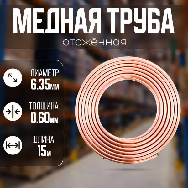 Медная труба для кондиционеров 1/4 дюйма, 6,3 мм х 0,6 мм, 15метров/бухта интересное: