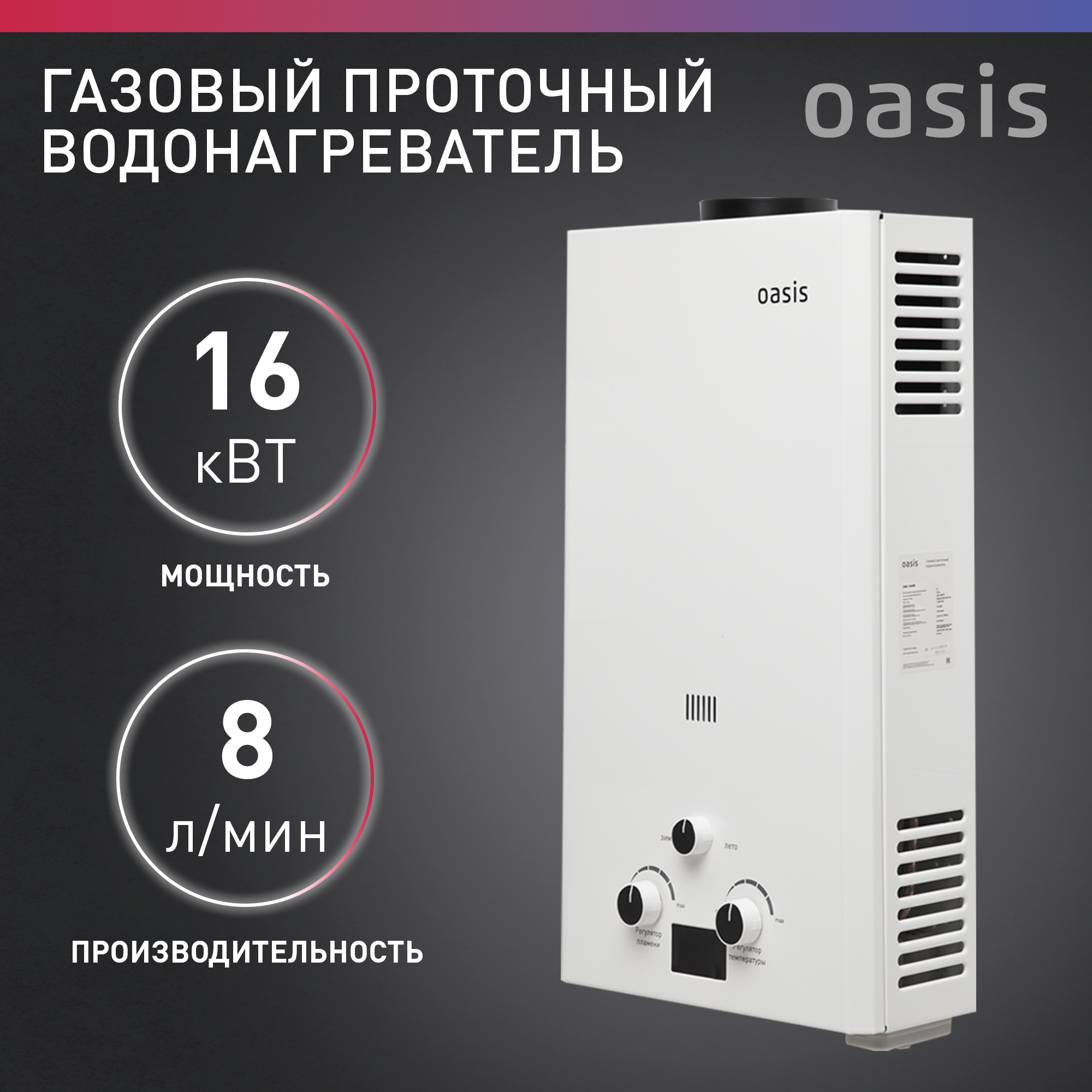Купить Водонагреватель проточный газовый OASIS 8 OR-16W, белый