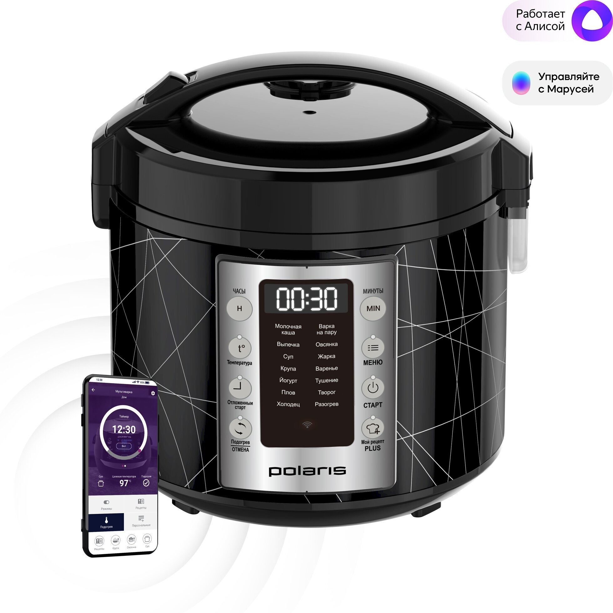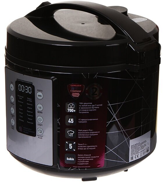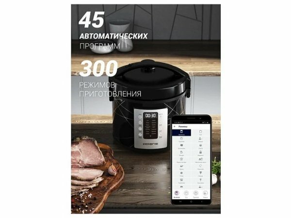 Умная мультиварка Polaris PMC 5020 Wi-Fi IQ Home, антипригарная чаша 5 литров, 45 автопрограмм, 700+ рецептов от шеф-поваров, черный