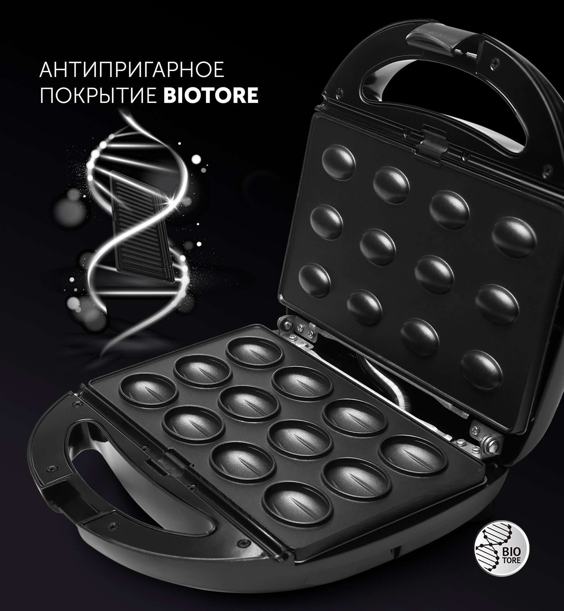 Прибор д/выпечки PST 0805 Polaris (850вт, орешки. вафли.сэндвич) черный