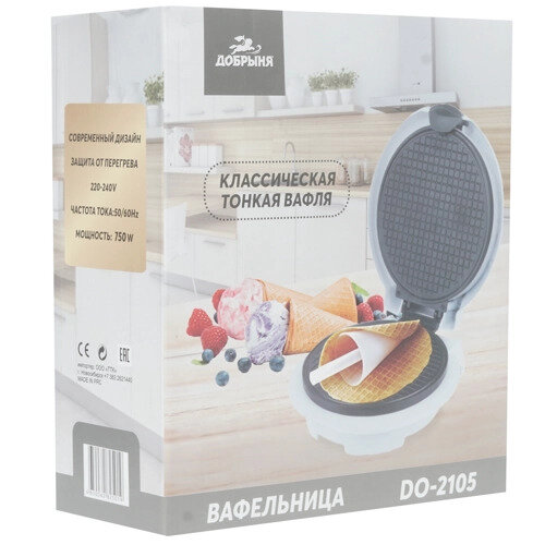 Купить Вафельница Добрыня DO-2105, форма для тонких вафель, конус для рожков