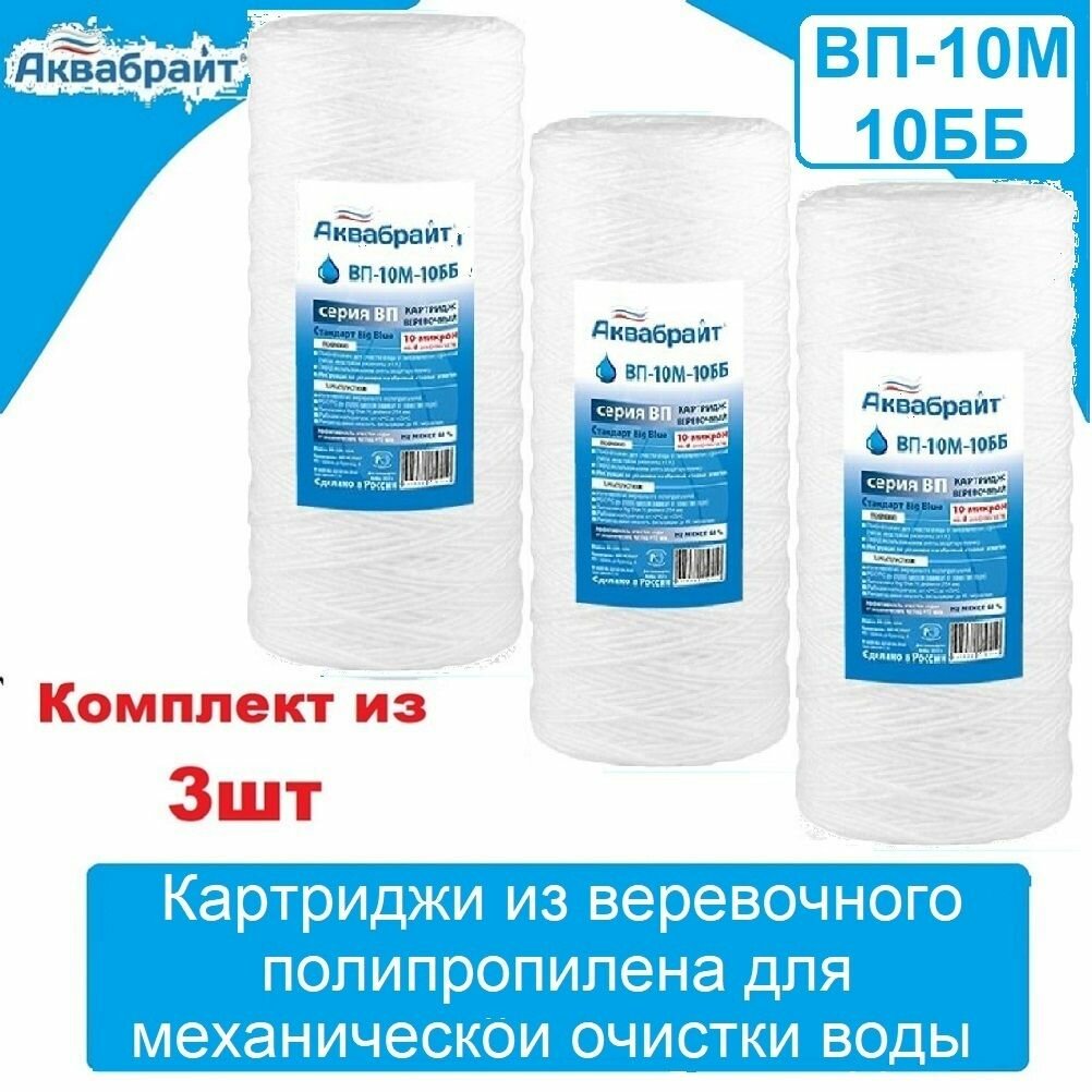 Купить Картридж из верёвочного полипропилена аквабрайт ВП-10М-10ББ Комплект из 3шт