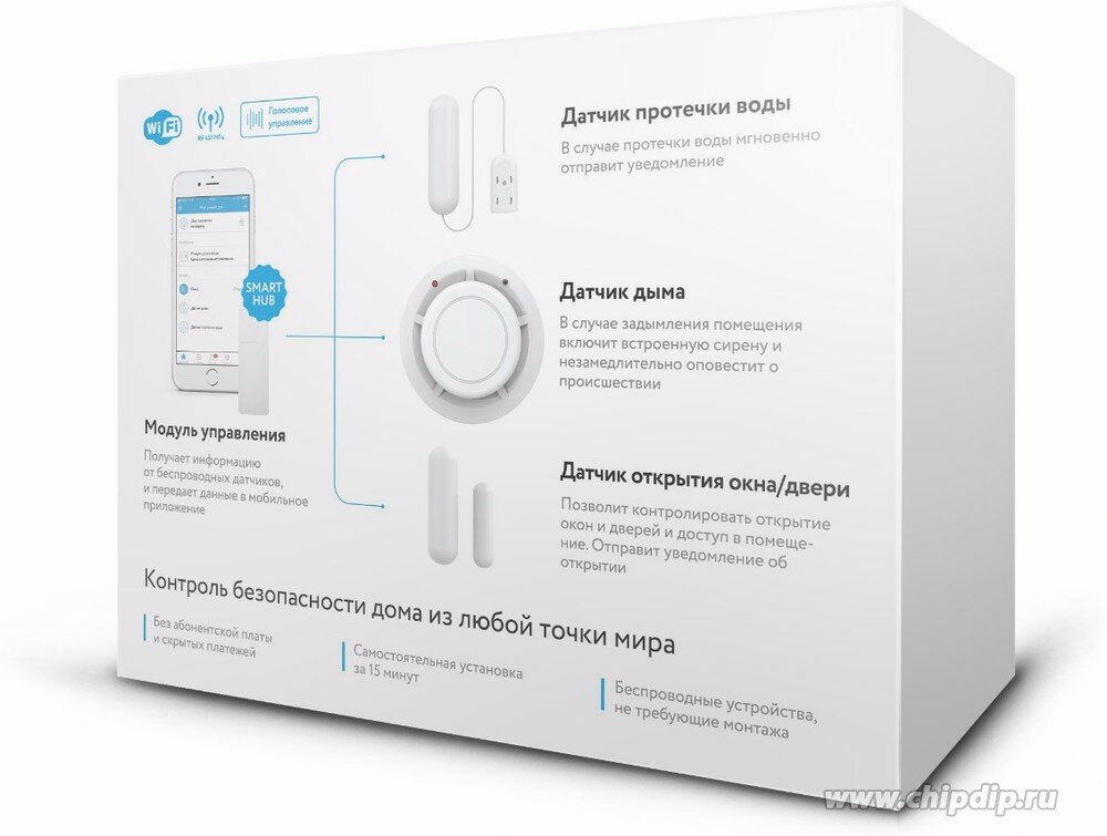 | Комплектация | датчик протечки / датчик дыма / шлюз / датчик открытия |