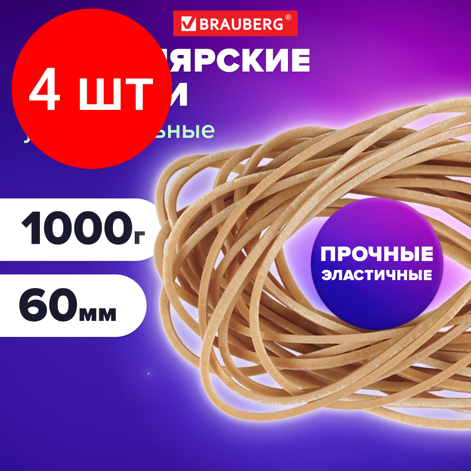 СохранитьКомплект 4 шт, Резинки банковские универсальные диаметром 60 мм, BRAUBERG 1000 г, натуральный цвет, натуральный каучук, 440052 интересное: