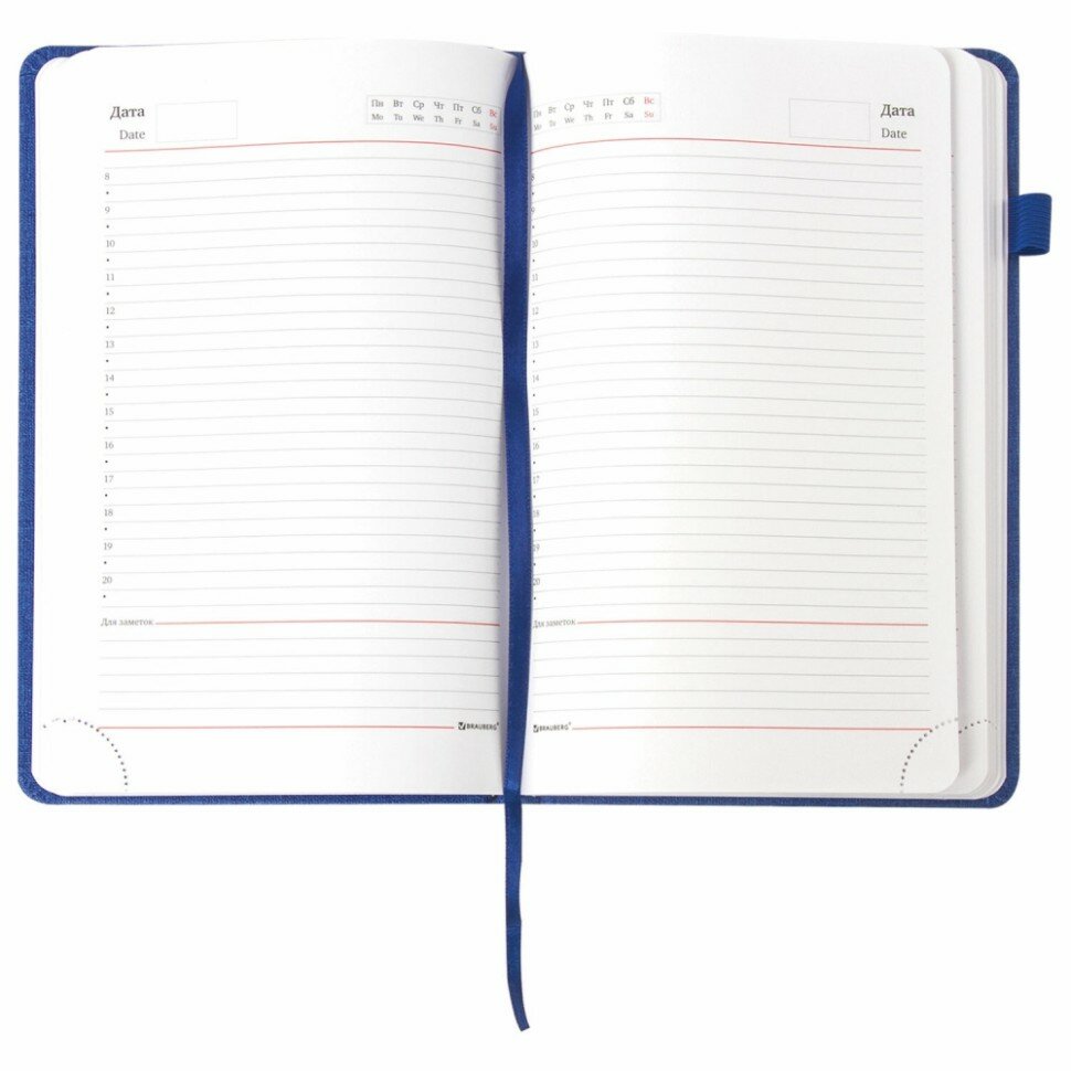 Ежедневник недатированный А5 (138x213мм) BRAUBERG Finest, 136л, кожзам, резинка, синий, 111872