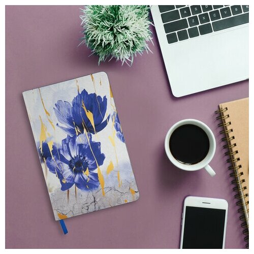 Ежедневник недатированный А5 (138х213 мм), BRAUBERG VISTA, под кожу, гибкий, 136 л., "Blue flowers", 112013 - 1 шт.