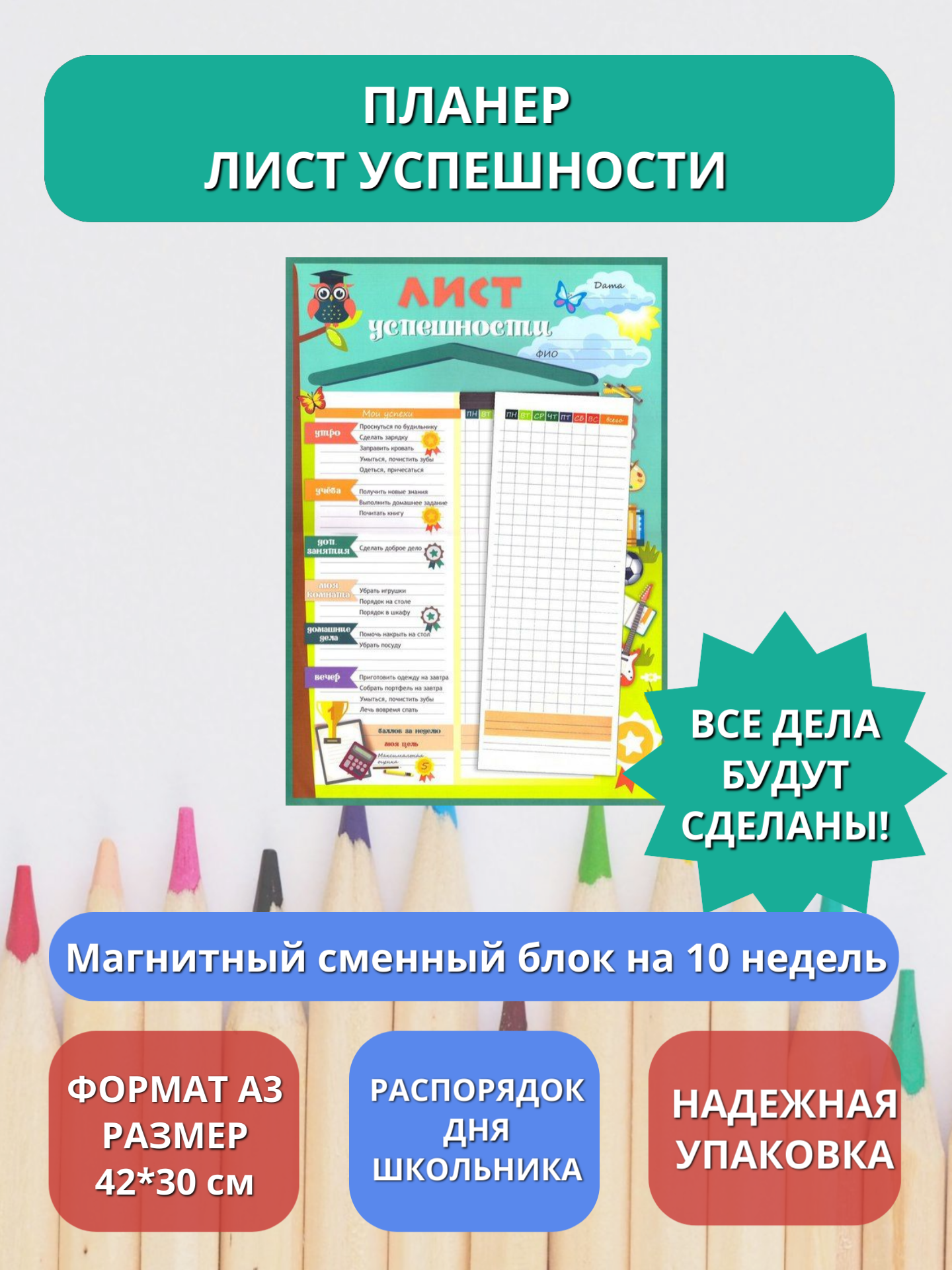 Лист успешности и магнитный блок на 10 недель для планирования распорядка дня и семьи интересное: