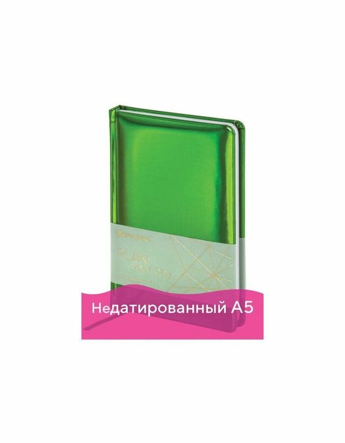 Ежедневник недатированный А5 (138x213 мм) BRAUBERG "Holiday", кожзам, 136 л., зеленый, 111672