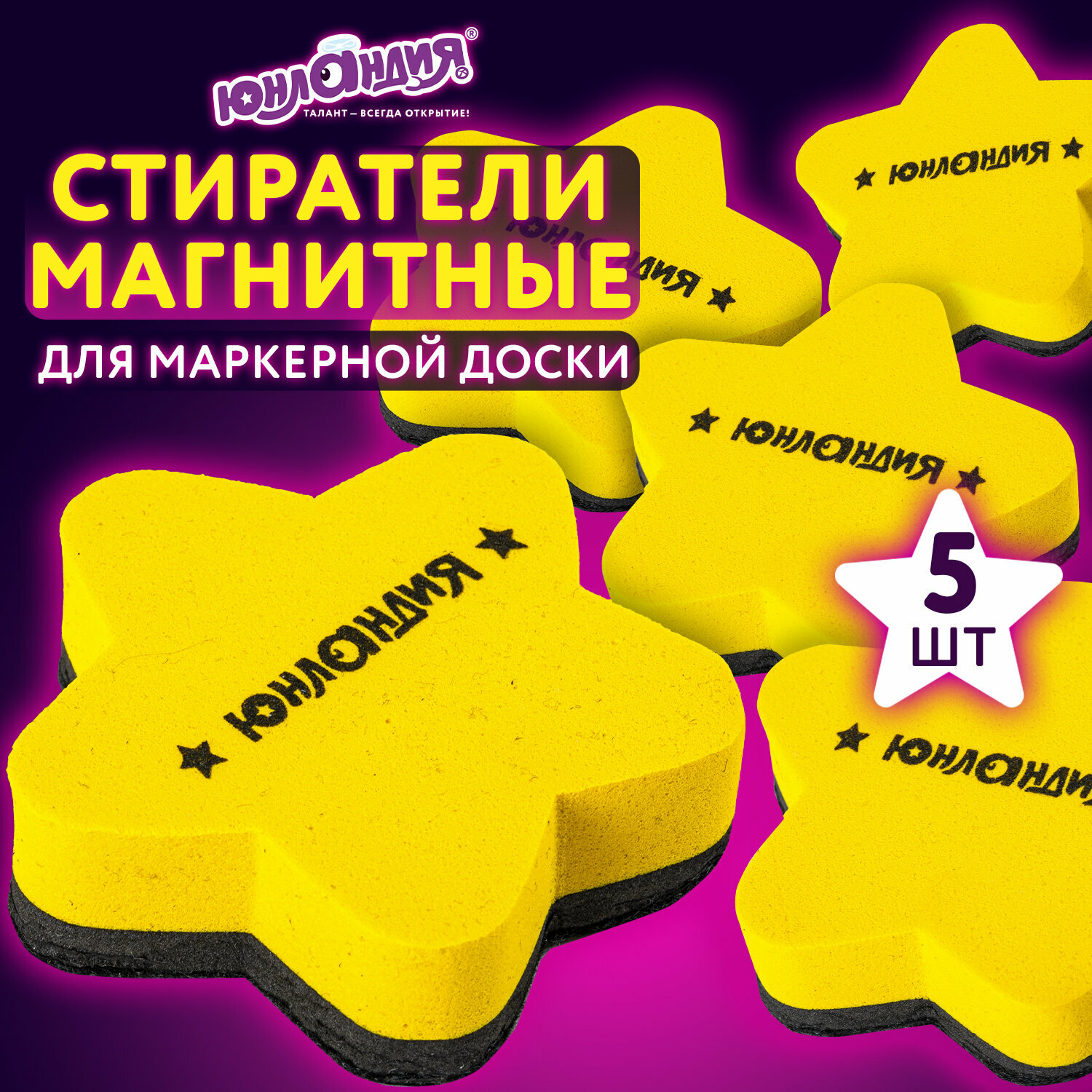 СохранитьСтиратели магнитные для магнитно-маркерной доски,75 мм,"Звезда", К-кт 5 ШТ., юнландия, желтые,237509 интересное: