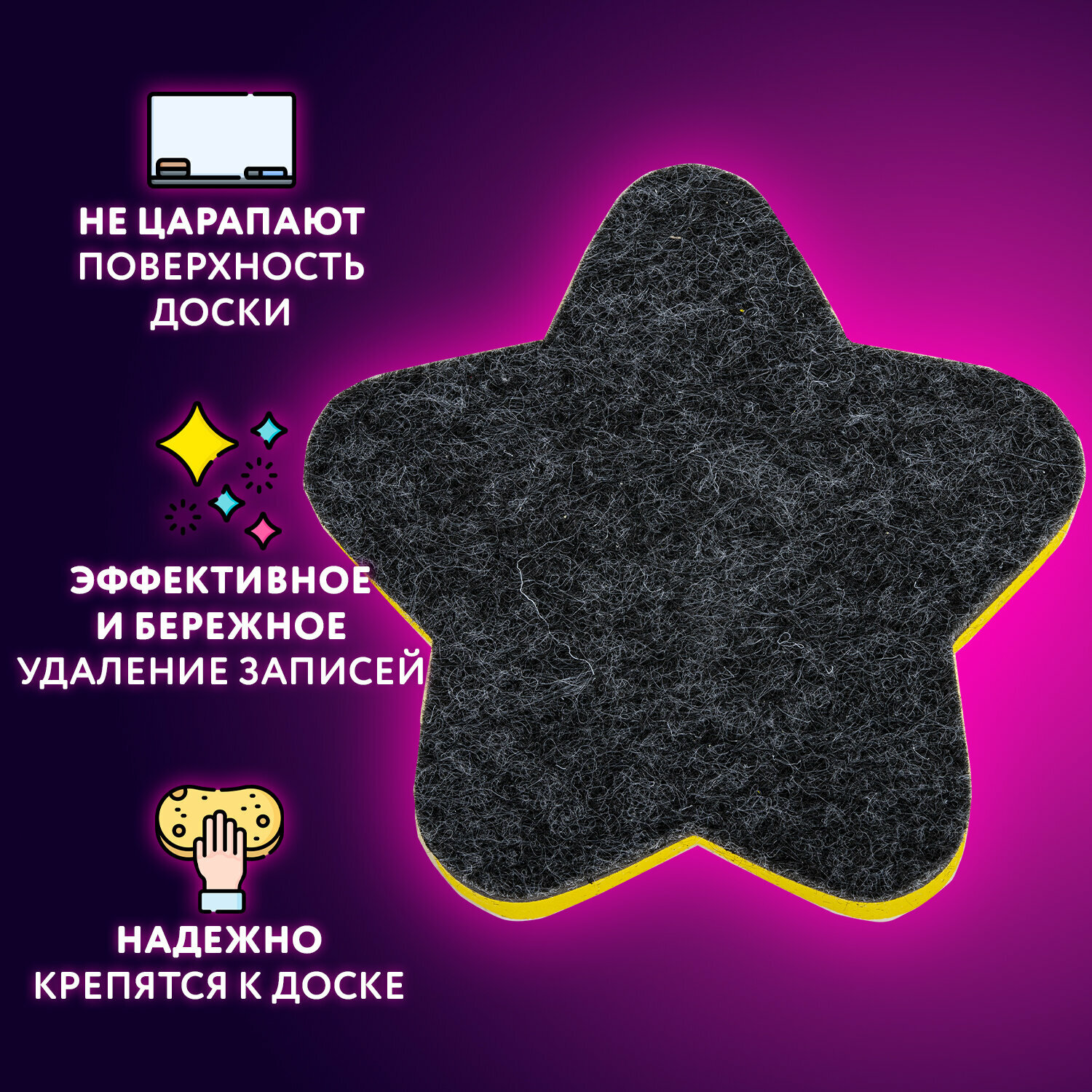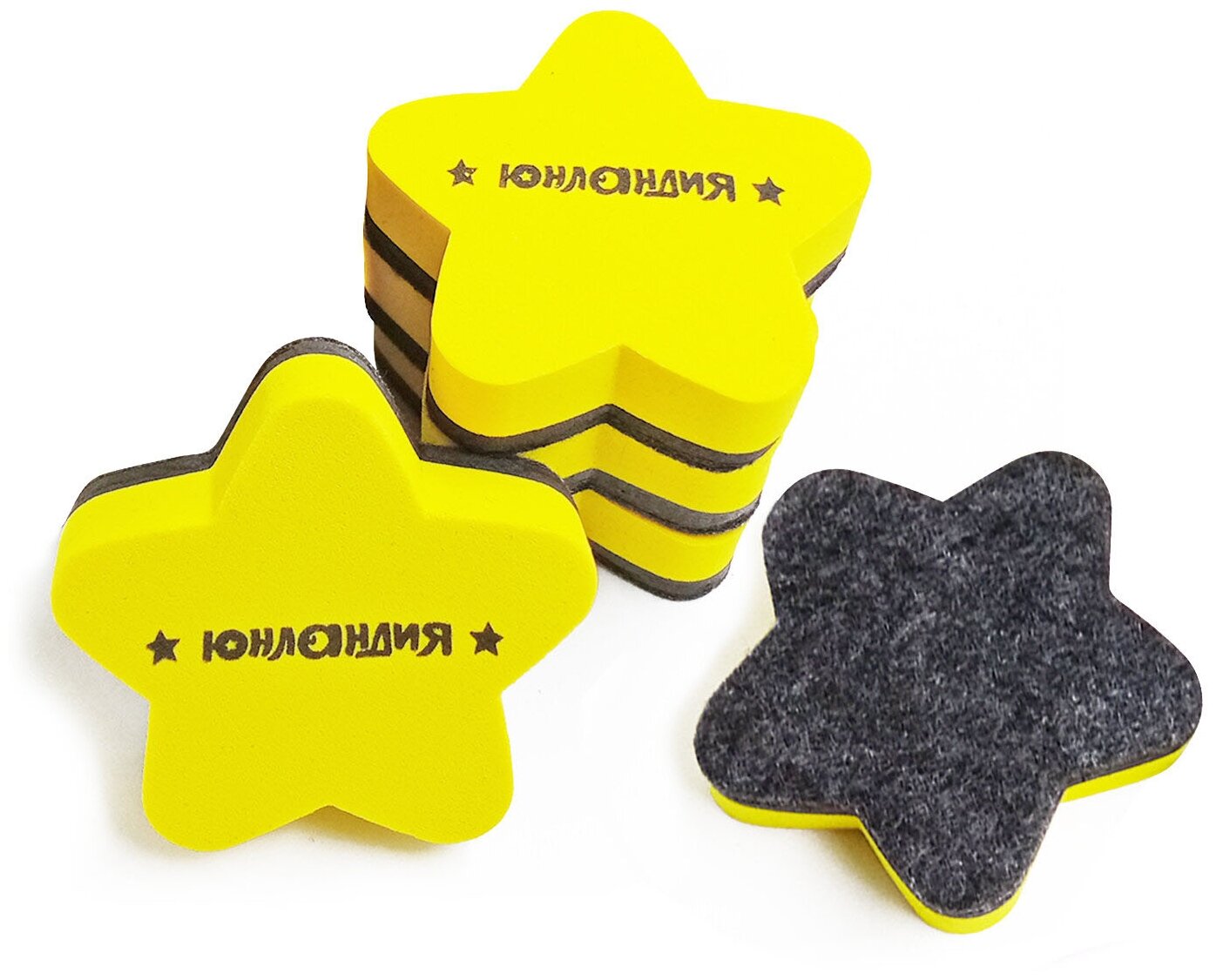 Стиратели магнитные юнландия для магнитно-маркерной доски, 75 мм, "Звезда", комплект 5 ШТ., , желтые