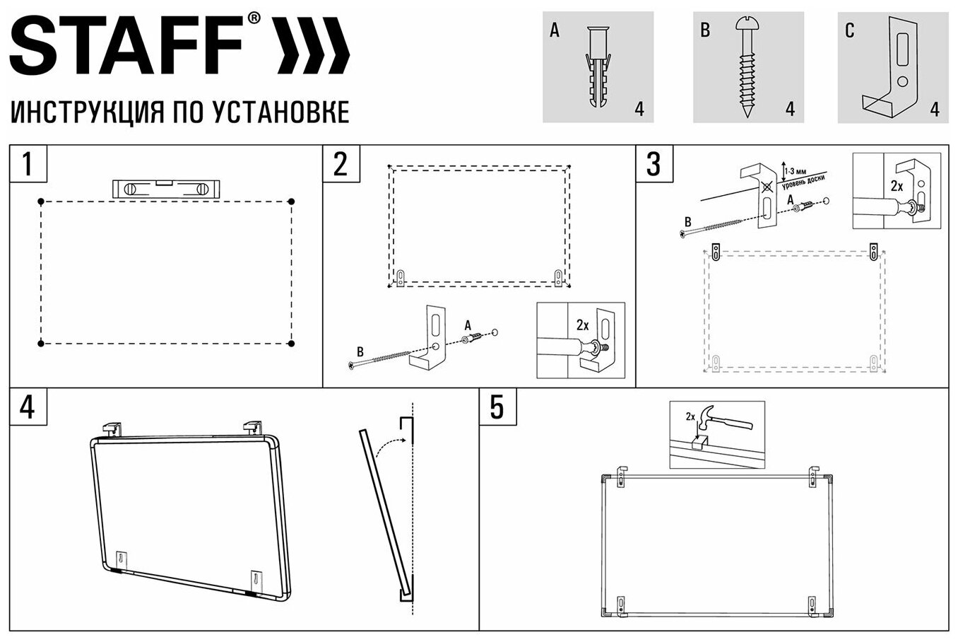 Доска магнитно-маркерная STAFF 60х90 см металлическая рамка 238137 60х90 см металлическая рамка