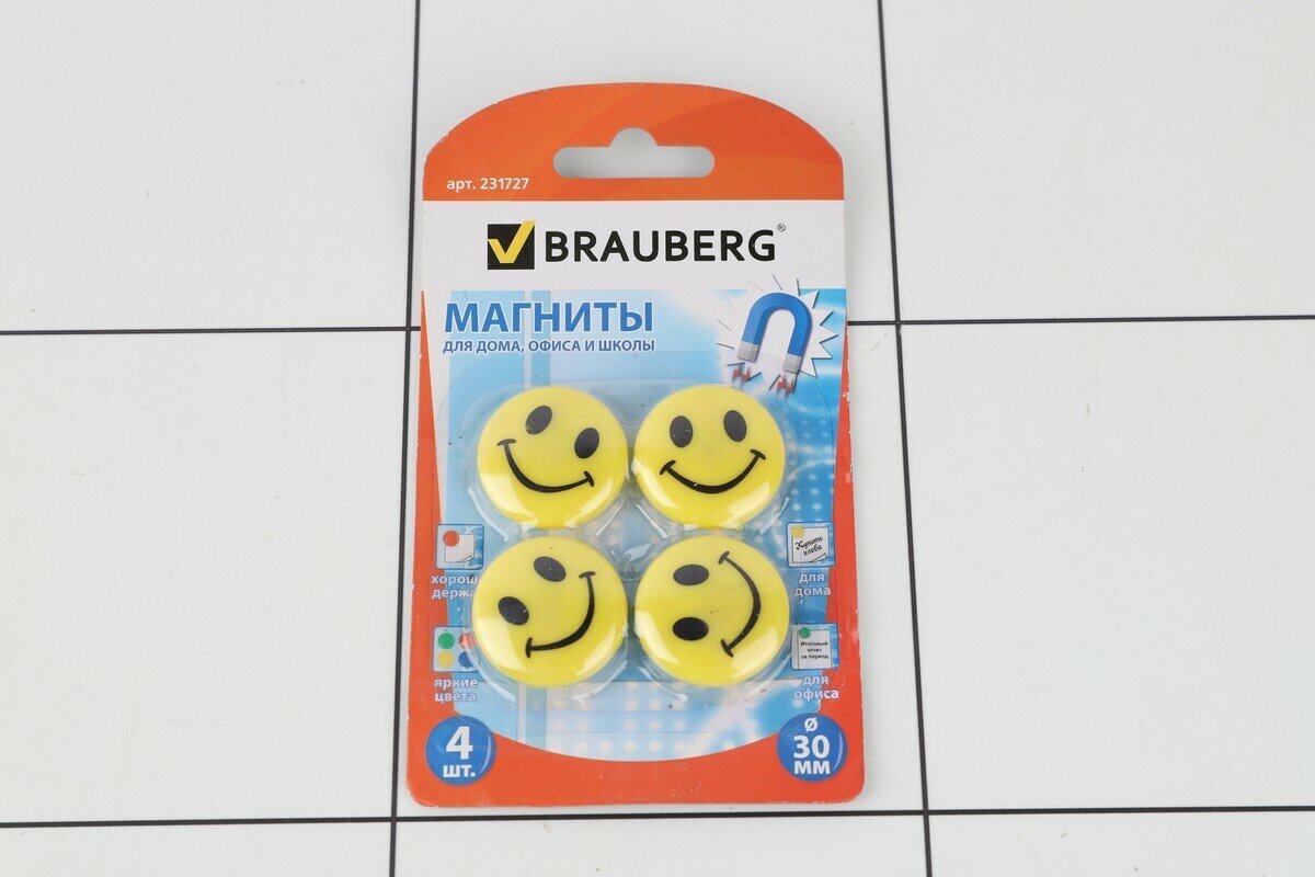 Brauberg Магниты диаметр 30 мм, 4 шт., смайлики, 231727