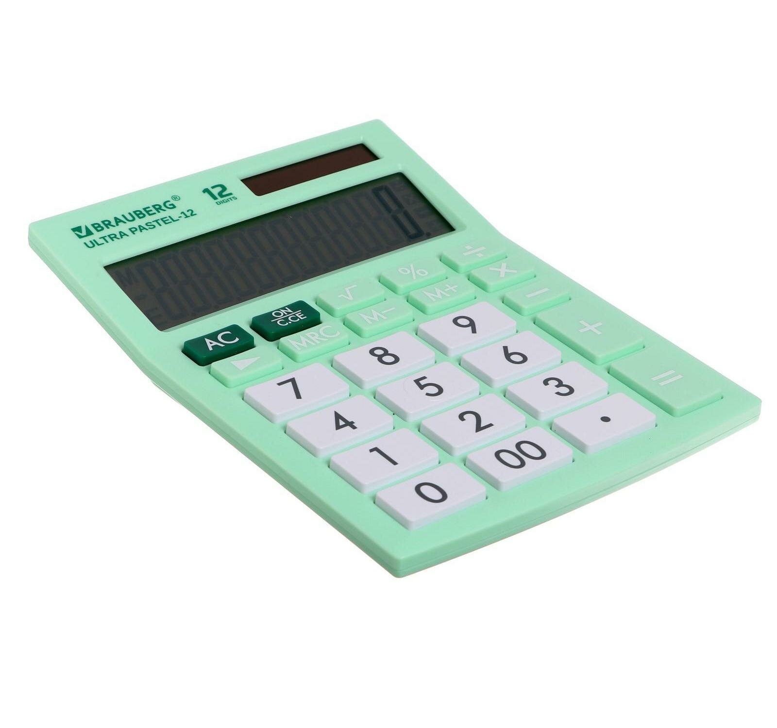 Купить Калькулятор настольный BRAUBERG ULTRA PASTEL-12-LG (192×143 мм), 12 разрядов, двойное питание, мятный