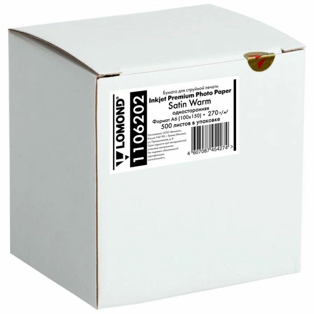 Фотобумага LOMOND Односторонняя Satin Warm для струйной печати, A6, 270 г/м2, 500 листов.