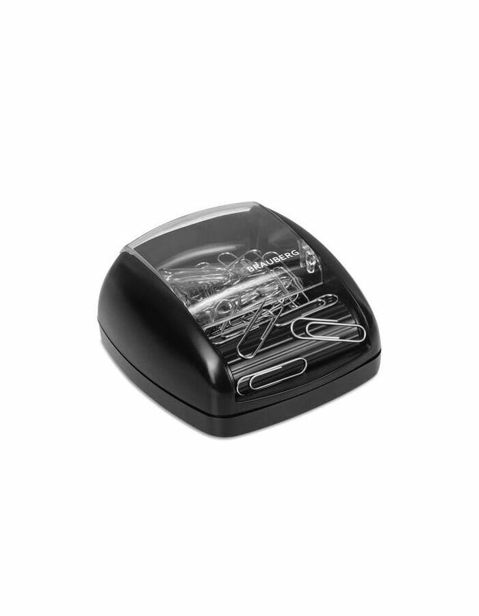 Скрепочница магнитная закрытая Brauberg (пластик, роликовый механизм) + 30 скрепок, черная (225188), 10 уп.