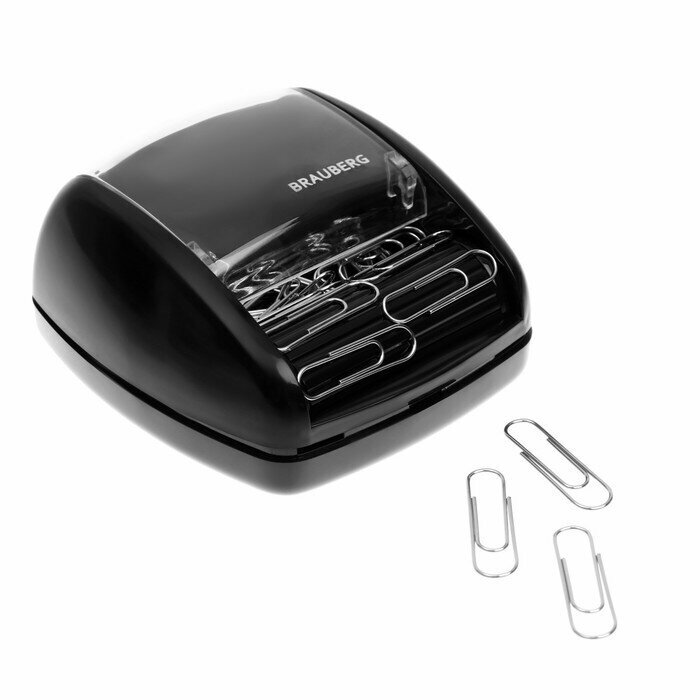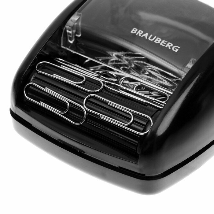 Brauberg Скрепочница магнитная с 30 скрепками, роликовый механизм подачи, чёрная