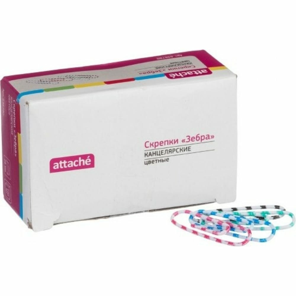 Скрепки Зебра Attache, полимер, 28 мм., 100 шт.в карт/уп