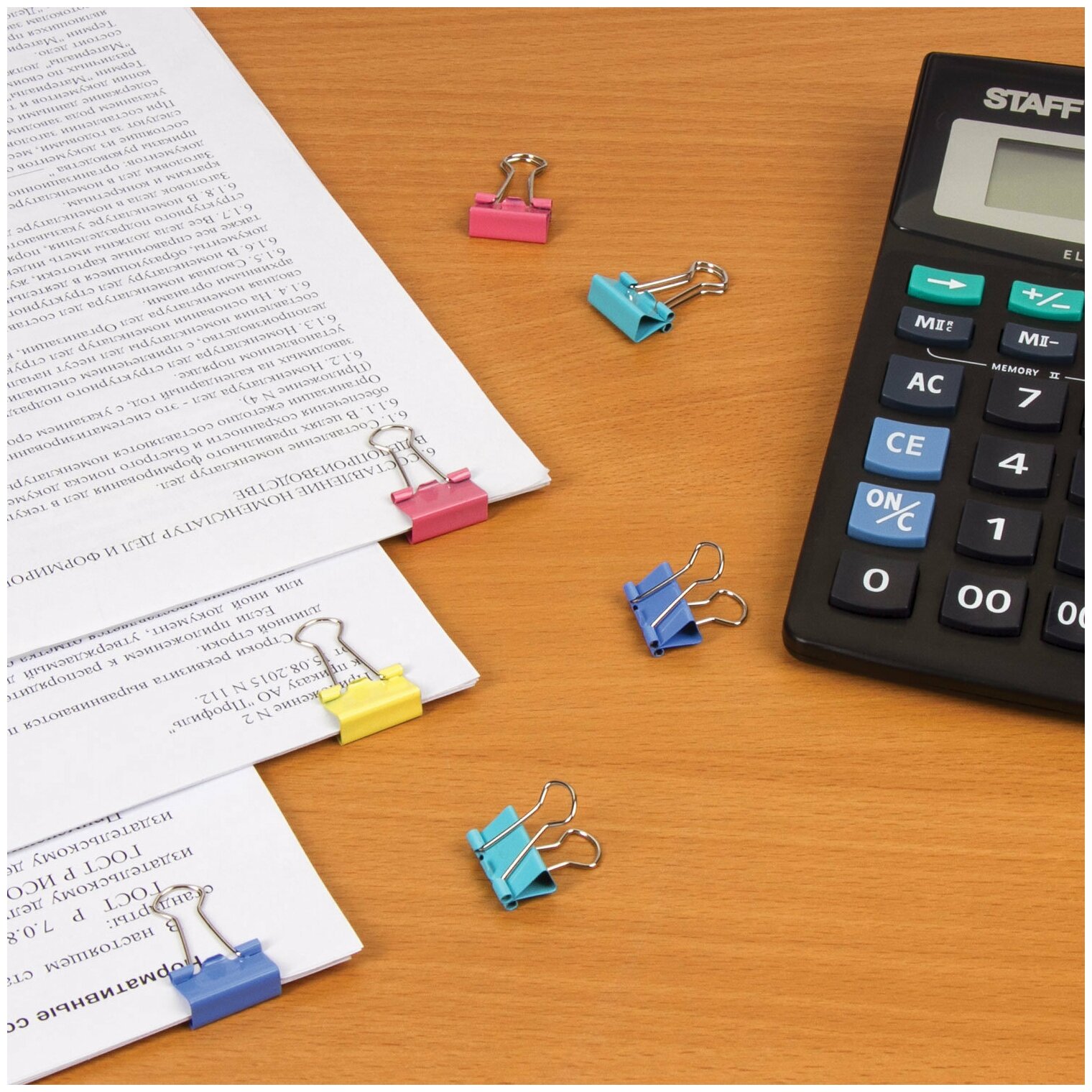 Зажимы для бумаг металлические Staff (25мм, до 100 листов, цветные) в картонной коробке, 12шт. (225157)