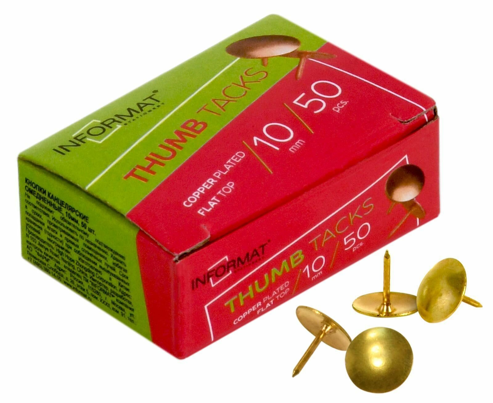 Канцелярские кнопки INFORMAT 10 мм 50 шт омеднённые золото пластиковая упаковка KKZ-50K