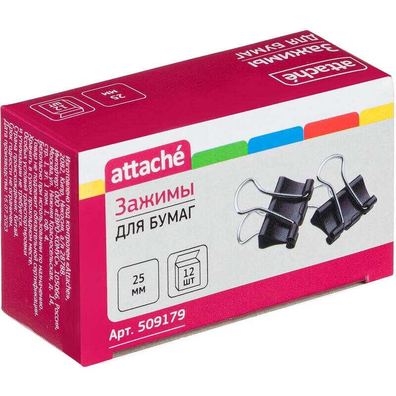 Зажимы для бумаг 25мм 12шт/уп Attache, в картонной коробке, 12 уп.