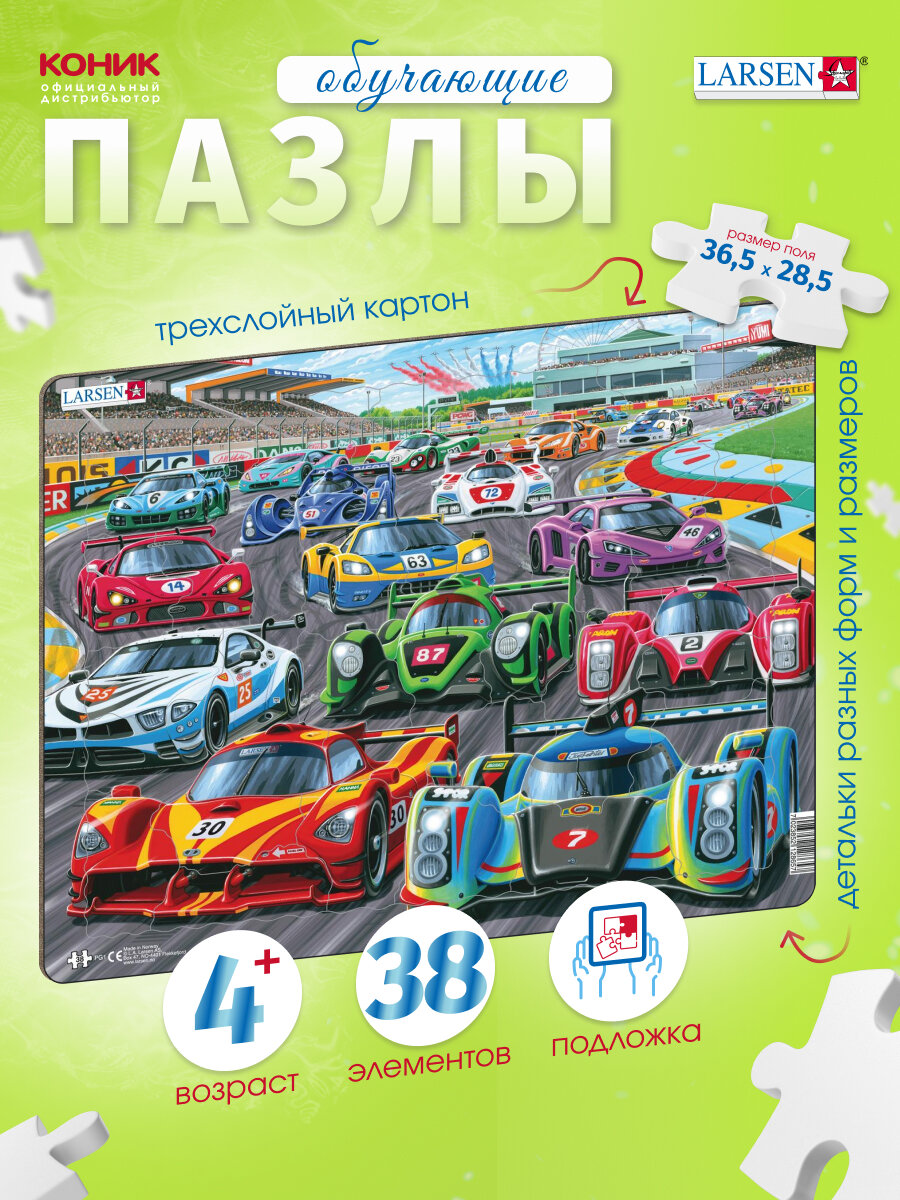 Пазлы для детей Larsen "Гоночные машинки", 38 элементов,
