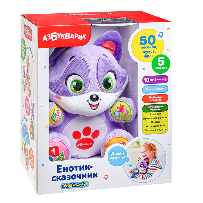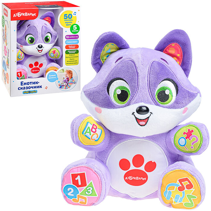 Енотик сказочник, Азбукварик, говорящая мягкая игрушка, знает много сказок и песенок