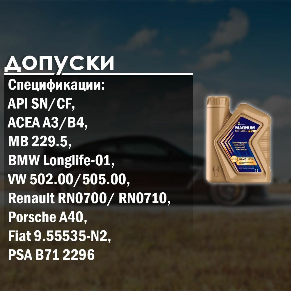 Масло моторное РосНефть Magnum Ultratec 5/40, А3 Sn/cf, синтетическое, 1 л 9837651 .